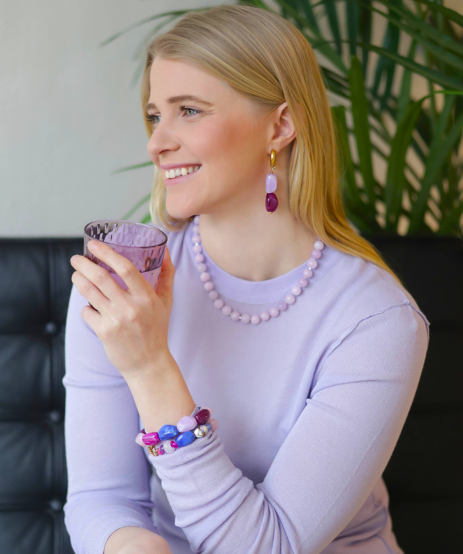 Armband grote acryl kralen kobalt/roze/paars