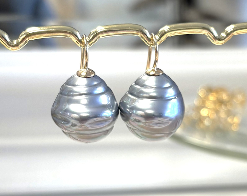 Barok parel oorbellen groot grijs/goud