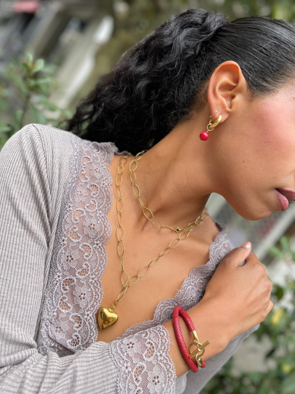 Beautiful stainless steel gold earrings (20mm x 4mm) with a pendant of warm orange agate (10mm)